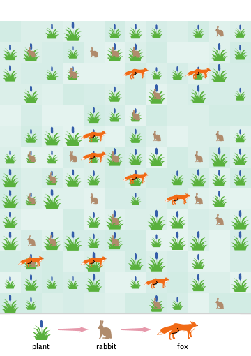 4. Foxes and rabbits gain energy when they find food and will produce offspring when they accumulate enough energy.