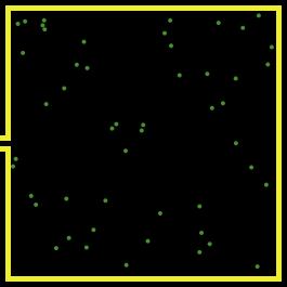The Connected Chemistry models include invisible dark particles (the "dark-particles" breed), which only interact with each other and the walls of the yellow box. The inclusion of dark particles ensures that the speed of simulation remains constant, regardless of the number of particles visible in the simulation.