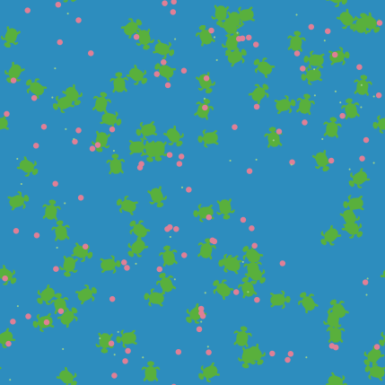 globals [ plastic-speed turtle-speed ] breed [sea-turtles sea-turtle] breed [plastics plastic] breed [foods food] sea-turtles-own [ body-condition plastic-eaten plastic-mass-ingested food-eaten speed scl ; straight carapace length in cm ] plastics-own [ mass ] to setup clear-all set plastic-speed 0.02 set turtle-speed (1.4 / 3.6) set plastic-ingestion-chance 0.3 ; you can adjust this set food-ingestion-chance 0.6 ; you can adjust this ask patches [ set pcolor sky ] ; light blue background create-sea-turtles 100 [ set shape "turtle" set color green set size 2 set body-condition "excellent" set plastic-eaten 0 set plastic-mass-ingested 0 set food-eaten 0 set speed turtle-speed set scl random-float 50 + 30 ; SCL range 30–80 cm setxy random-xcor random-ycor ] create-plastics 100 [ set shape "circle" set size 0.5 set color pink set mass random-float 69 + 1 ; mass from 1 to 70g setxy random-xcor random-ycor ] create-foods 50 [ set shape "dot" set size 0.4 set color green + 2 setxy random-xcor random-ycor ] reset-ticks end to go add-plastics add-foods ask sea-turtles [ forage avoid-collisions eat-plastic eat-food update-condition update-health-distribution ] tick end to add-plastics if count plastics < 200 [ create-plastics 2 [ set shape "circle" set size 0.5 set color pink set mass random-float 69 + 1 setxy random-xcor random-ycor ] ] end to add-foods if count foods < 100 [ create-foods 1 [ set shape "dot" set size 0.5 set color grey + 2 setxy random-xcor random-ycor ] ] end to avoid-collisions let nearby-turtle one-of other turtles in-radius 1.5 if nearby-turtle != nobody [ right random 180 forward 0.5 ] end to update-health-distribution set-current-plot "Turtle Health Distribution" clear-plot let conditions ["excellent" "good" "fair" "poor" "dead"] foreach conditions [ condition -> set-current-plot-pen condition plot count sea-turtles with [body-condition = condition] ] end to eat-plastic let target one-of plastics with [distance myself < 1] if target != nobody and random-float 1 < plastic-ingestion-chance [ set plastic-eaten plastic-eaten + 1 set plastic-mass-ingested plastic-mass-ingested + [mass] of target ask target [ die ] ] end to eat-food let target one-of foods with [distance myself < 1] if target != nobody and random-float 1 < food-ingestion-chance [ set food-eaten food-eaten + 1 ask target [ die ] ] end to forage let decision random-float 1 ; Decide whether to search for food or plastic if decision < food-ingestion-chance [ let target one-of foods in-radius 10 if target != nobody [ face target fd speed * 0.2 ] if target = nobody [ rt random 360 fd speed * 0.1 ] ] if decision >= food-ingestion-chance [ let target one-of plastics in-radius 10 if target != nobody [ face target fd speed * 0.2 ] if target = nobody [ rt random 360 fd speed * 0.1 ] ] end to update-condition let plastic-per-scl plastic-mass-ingested / scl ; Check for body condition if plastic-per-scl <= 0.0718 [ set body-condition "excellent" set color green set speed turtle-speed ] if plastic-per-scl > 0.0718 and plastic-per-scl <= 0.1460 [ set body-condition "good" set color violet set speed turtle-speed * 0.75 ] if plastic-per-scl > 0.1460 and plastic-per-scl <= 0.2282 [ set body-condition "fair" set color yellow set speed turtle-speed * 0.5 ] if plastic-per-scl > 0.2282 and plastic-per-scl <= 0.30 [ set body-condition "poor" set color red set speed turtle-speed * 0.25 ] if plastic-per-scl > 0.30 [ set body-condition "dead" set color black ; Turtle dies die ] end
