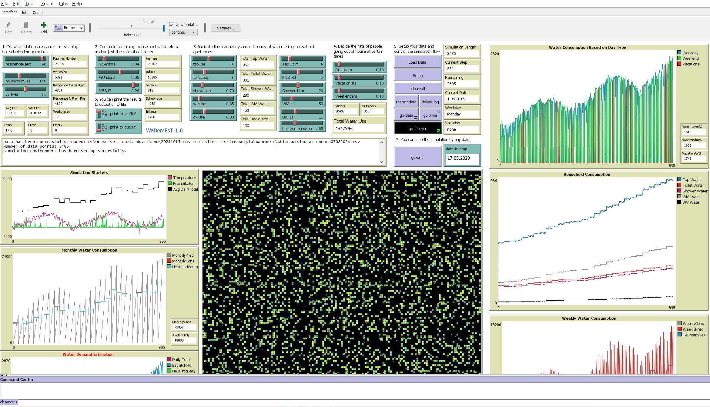This model simulates household water consumption patterns in an urban environment.