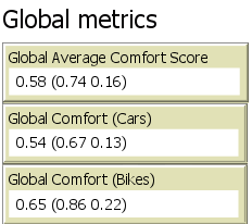 The model's main output is the comfort-score, which is calculated for each agent upon finishing its journey. It is a combination of three sub-metrics: